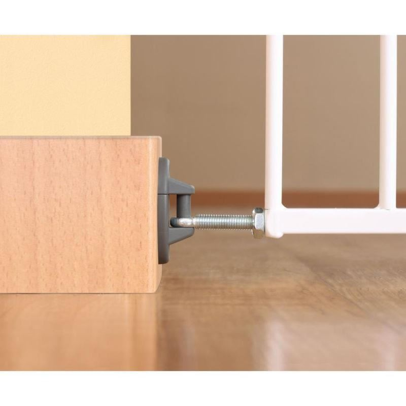 - Securizeaza usile, scarile si pasajele de trecere cu trepte- Porțile tip S-Gate se montează prin înșurubare în perete, la capătul de jos sau de sus al scărilor, asigurând o bună securizare a zonelor cu trepte periculoase. Datorită sistemului de montare prin înșurubare fermă în perete, nu este necesar cadrul de presiune. În acest fel poarta se deschide pe toată lățimea ei, asigurând trecerea fără pericol de împiedicare.- Dimensiune ajustabila continuu, potrivita pentru spatii de trecere intre 68 – 106 cm- Balamalele prinse puternic de perete cu șuruburi asigură o susținere fermă și posibilitatea deschiderii porții pe toată lațimea de trecere, în ambele direcții.- Cele 4 puncte independente de ajustare ofera posibilitatea fixarii portii chiar si in situatia unor suprafete de montaj neuniforme, cum ar fi pereti strambi sau balustrade- Simple-Lock: incuietoare cu dublu sistem de siguranta, integrata in sistemul de prindere pe perete, ce previne deschiderea portii de catre copii. Usor si la indemana de deschis de catre adulti, cu o singura mana: doar apasati in jos clema incuietorii, ridicati poarta si deschideti.- Usa trebuie deschisa si inchisa manual- Inaltime 75 cm- Deschidere in ambele directii, pe toata ltimea spatiului de trecere si fara prag- Include opritor pentru limitarea deschiderii pe una din directii- Material: metal (otel) si plastic (PA6, SEBS, POM)- Culori: metal - alb; plastic – gri deschis- Potrivite pentru copiii cu varsta de pana la 2 ani- Destinate doar uzului casnic- Certificate conform ultimelor standarde de siguranta: SLG-GS EN 1930:2011