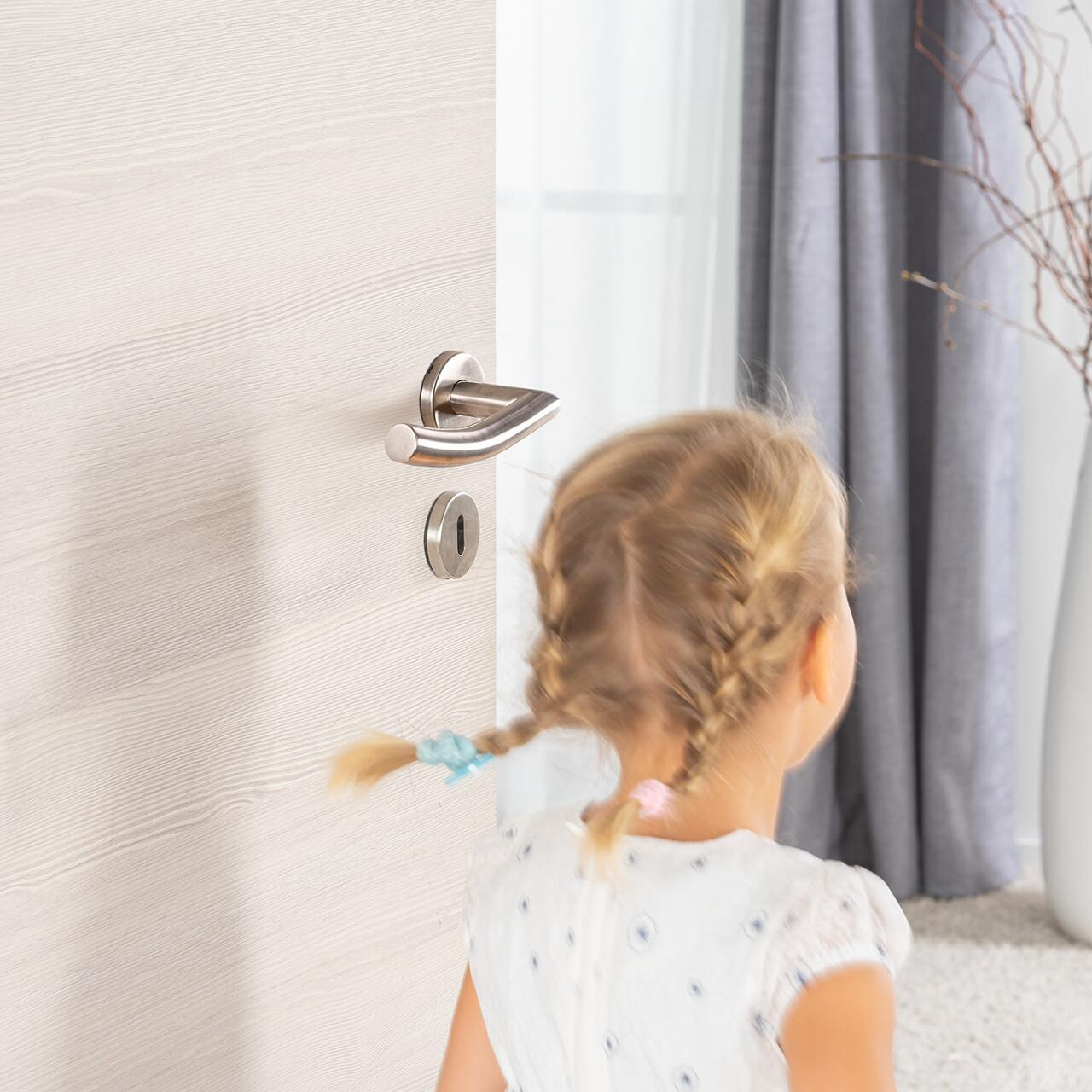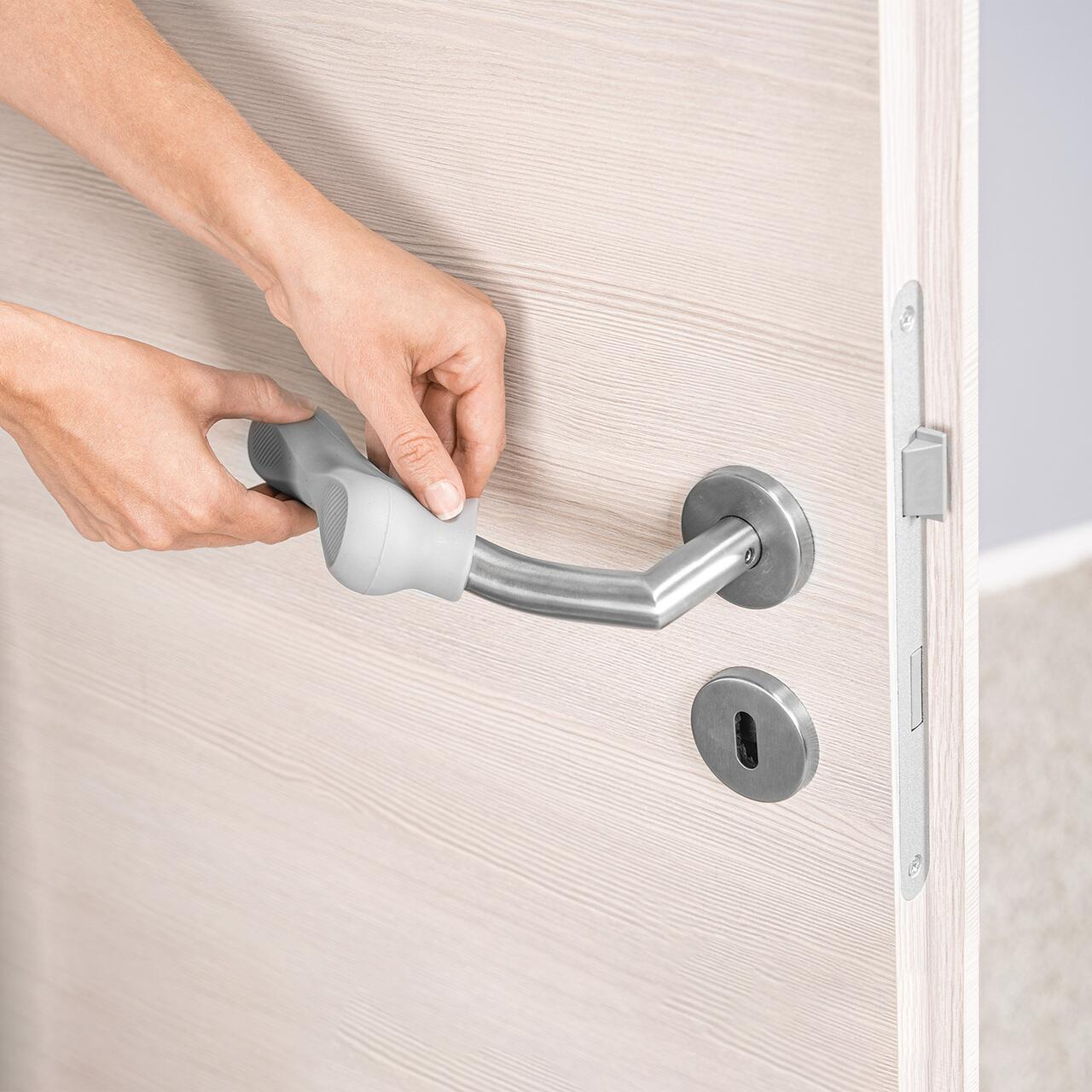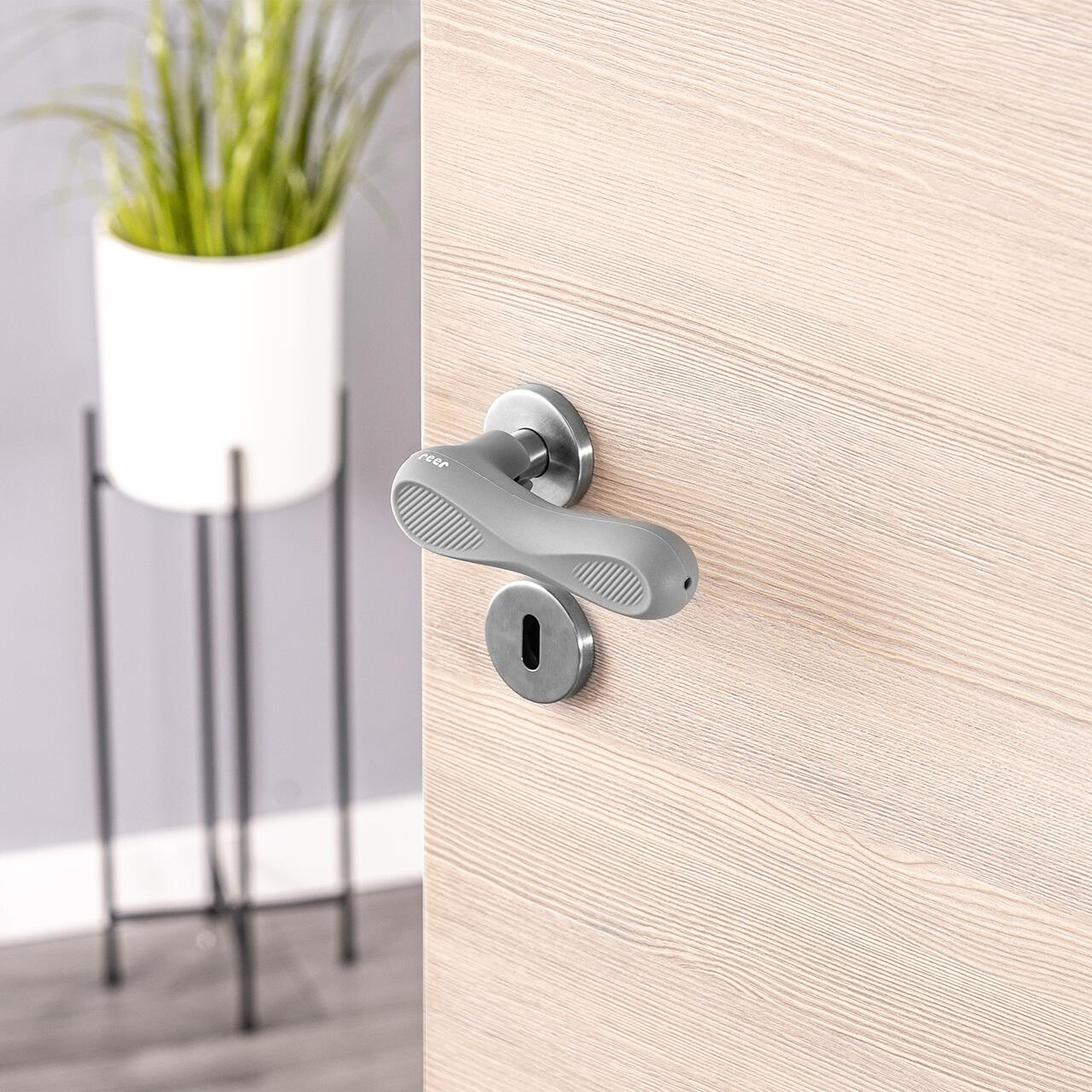 Husa pentru manerul usii pentru o protectie completaDe indata ce copiii au inceput sa mearga si sa alerge, clantele usilor pozitionate la inaltimea capului lor devin un pericol. Daca apare un impact, acesta nu este doar foarte dureros pentru copil, dar poate fi si periculos. Protectia pentru manerul usii de la Reer previne ranirea copilului si protejeaza peretii sau mobilierul de deteriorarea dupa o deschidere cu putere a usii. De asemenea, previne si loviturile adultilor in zona trunchiului, a brațului sau a cotului.Protectie maxima datorita formei care inveleste complet clantaProtectia pentru clanta este realizata din silicon rezistent, de inalta calitate. Constructia inteligenta ofera o absorbtie mai mare a socurilor decat capacele subtiri de blocare din spuma. Spre deosebire de alte protectii de maner, care acopera doar partea din fata a clantei usii, protectia HandleGuard de la Reer acopera intreg manerul, inclusiv coltul.Instalare usoara si rezistentaNu este necesar niciun material de fixare pentru asamblare. Deschiderea mare si flexibila din interiorul protectiei din silicon permite o instalare rapida si usoara. Materialul siliconic antiderapant asigura o potrivire ferma si o senzatie placuta la deschiderea sau inchiderea usii. Datorita dimensiunilor generoase (lungime 13cm, diametru aprox. 2 cm), protectia din silicon poate fi atasata la aproape orice forma de maner de usa, chair si la cele curbate. Poate fi curatata rapid si ușor cu apa calda si detergenti blanzi sau dezinfectanti - pentru o utilizare indelungata si igienica.Detalii produs:- protejeaza impotriva loviturilor de impact in zona capului- protejeaza peretii si mobilierul- potrivita pentru toate manerele usilor interioare comune- confectionata din silicon flexibil si rezistent, fara BPA- lungime 13 cm, diametru aproximativ 2 cm.- culoare: gri- pachetul continue 4 bucati