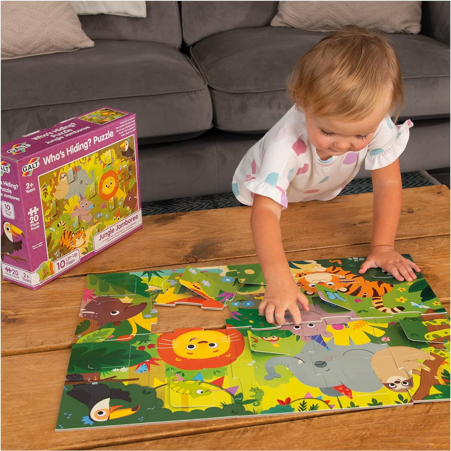 puzzle-ul stimuleaza si dezvolta abilitatile motorii fine ale copiilor, ii invata despre animalele si mediul lor natural din jungla si ii incurajeaza sa exploreze si sa descopere lumea din jurul lor
