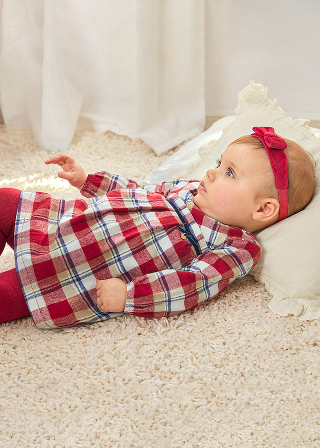 Modelul cu maneca lunga ofera confort in zilele mai racoroase, iar manecile sunt usor stranse cu elastic deasupra palmelor pentru o potrivire comoda si libertate de miscare. Imprimeul in carouri, in nuante de rosu, alb si albastru, ofera rochitei un aspect elegant si atemporal.