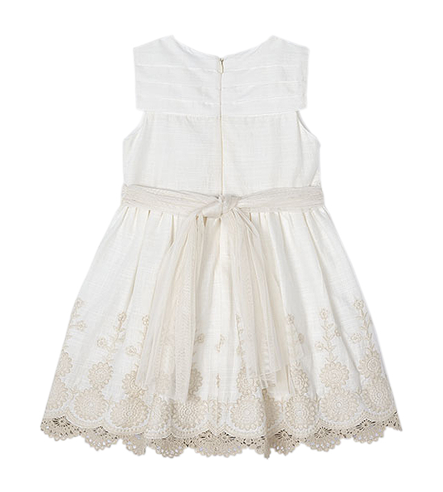 Rochie brodata Better Cotton - bej Rochita fara maneci are gulerul rotund, iar inchiderea se face cu fermoar ascuns pe spate, pentru a usura imbracarea ei.Model este incretit in talie, avand un cordon din tul elegant.Desing cu broderie la marginea acesteia, avand un aspect fresh si la moda. Material: exterior - 100% bumbac captuseala - 100% bumbac cordon - 100% poliamida