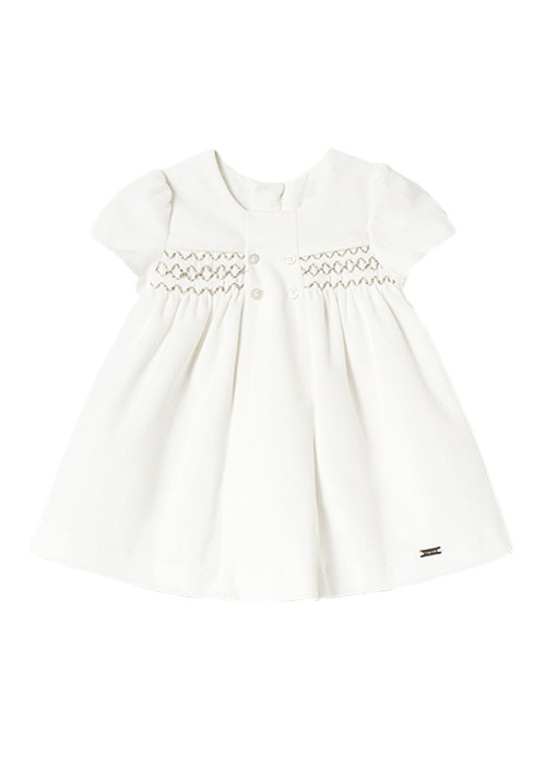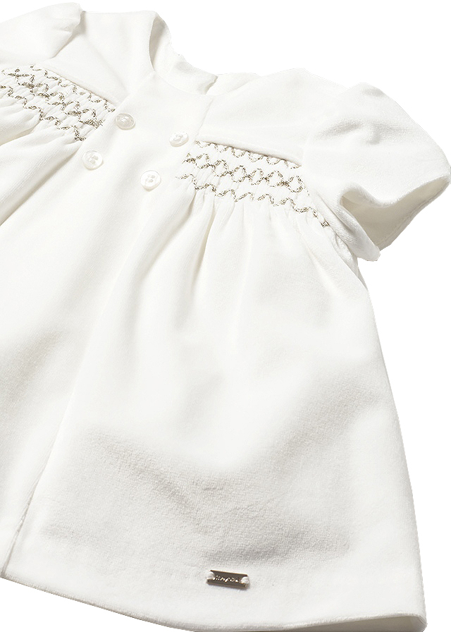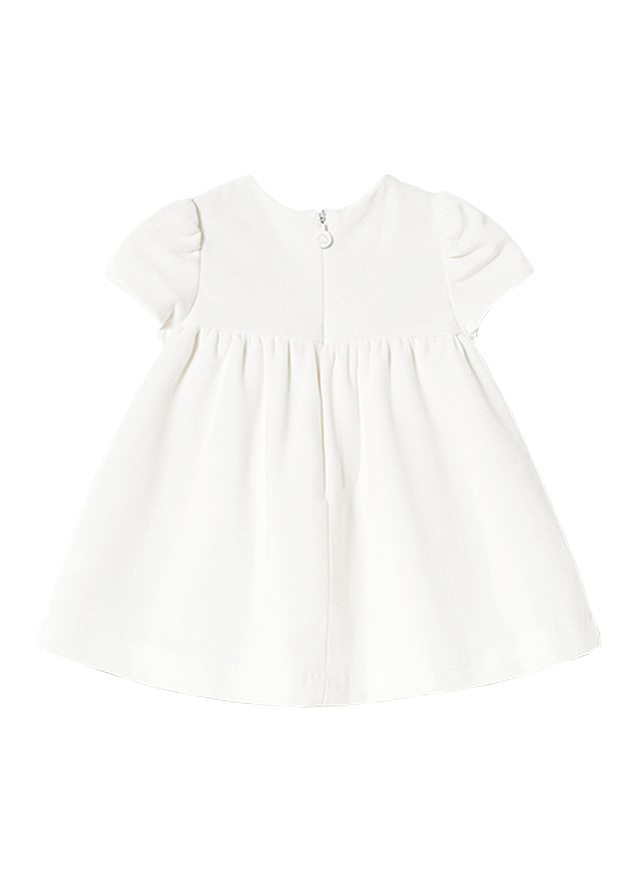 Rochita cu maneca scurta are gulerul rotund si se inchide cu fermoar ascuns pe spate, pentru a facilita imbracarea bebelusului.