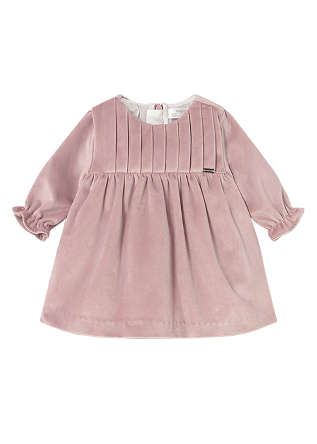 Rochita cu maneca lunga si mansete elastice are gulerul rotund si se inchide cu fermoar ascuns pe spate, pentru a facilita imbracarea bebelusului.