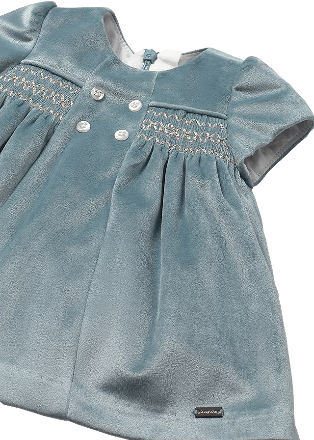 Rochita cu maneca scurta are gulerul rotund si se inchide cu fermoar ascuns pe spate, pentru a facilita imbracarea bebelusului.