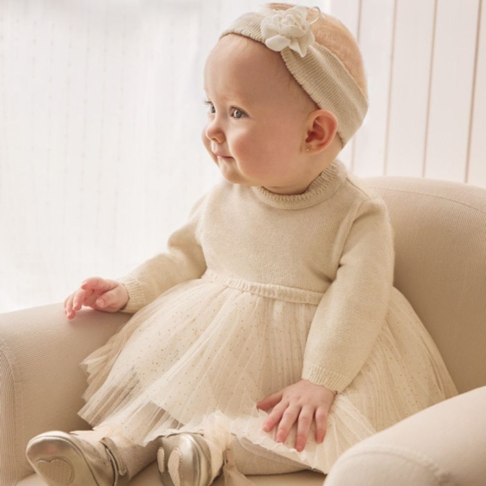 Rochie ceremonie combinatie tricot si tul nou-nascut - Mayoral