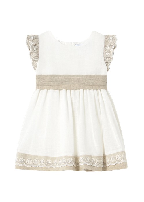 Rochie cu volane si cordon - alb / bej - Mayoral 12 luni
