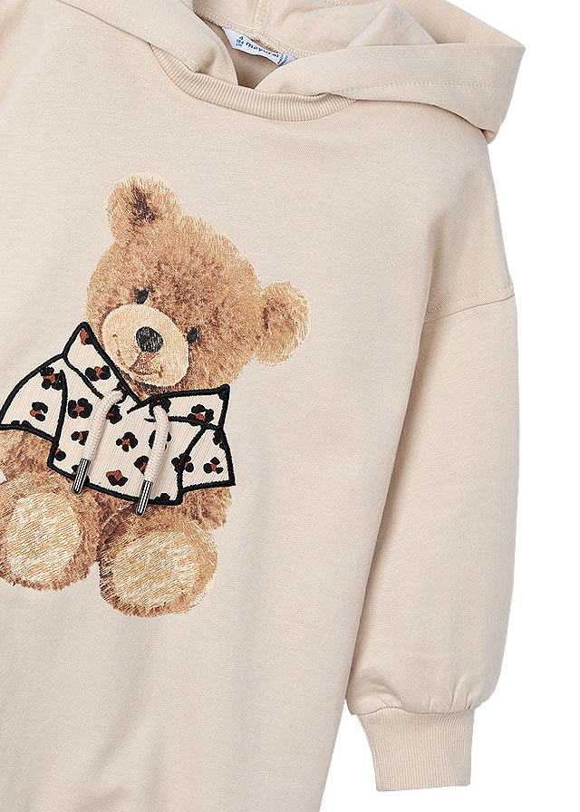 Rochia tip hanorac cu maneca lunga si mansete elastice, are gulerul rotund cu gluga.Materialul este calduros din plus gros, perfect pentru lunile reci.