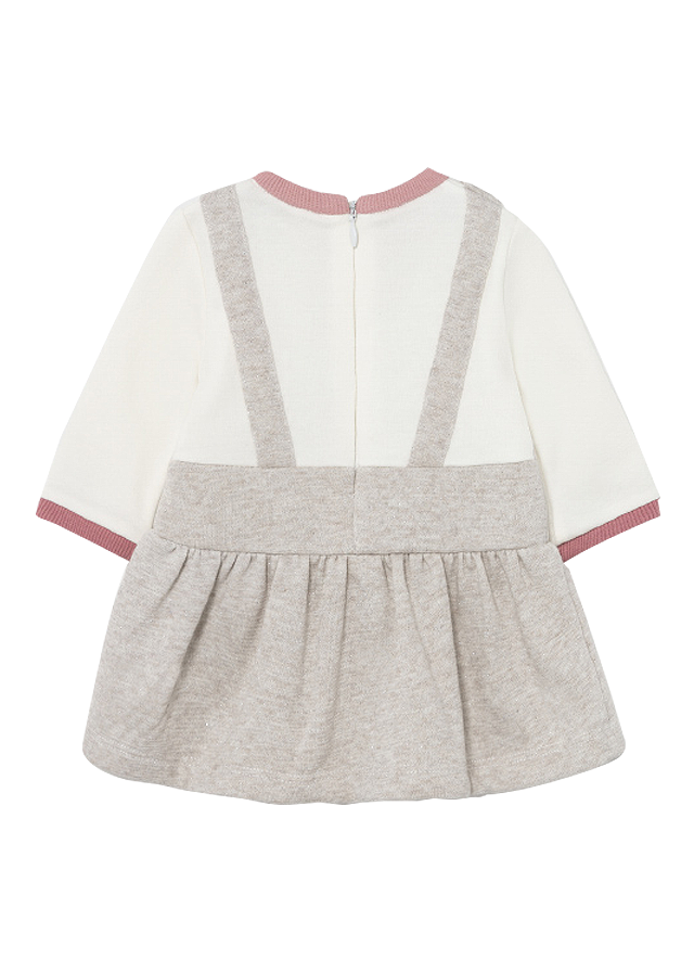 Rochie salopeta + caciula - Alb/Gri - MayoralRochia cu maneca lunga are gulerul rotund cu detalii in contrast si croiala pe talie.Inchiderea se realizeaza cu fermoar invizibil pe spate, pentru a facilita imbracarea micutei.Design simulat cu salopeta suprapusa.Caciula este confectionata din materiale calduroase si flexibile.Aceasta garanteaza o ajustare perfecta pe cap si un confort maxim pentru protejarea impotriva frigului.Material: rochie - exterior - 64% bumbac / 32% poliester 3% fibrele metalice / 1% elastan captuseala - 50% poliester / 45% bumbac / 5% fibrele metalice caciula - exterior - 52% / bumbac / 43% poliester / 4% fibrele metalice / 1% elastan captuseala - 100% / bumbacCuloare: roz / gri / albImprimeu: pisicutaIntretinere: Spalare: automata / manuala Temperatura: max. 30°C