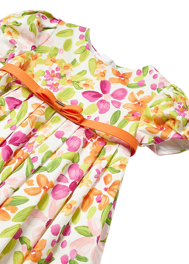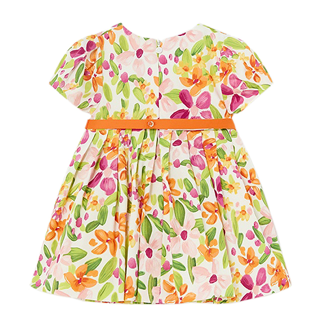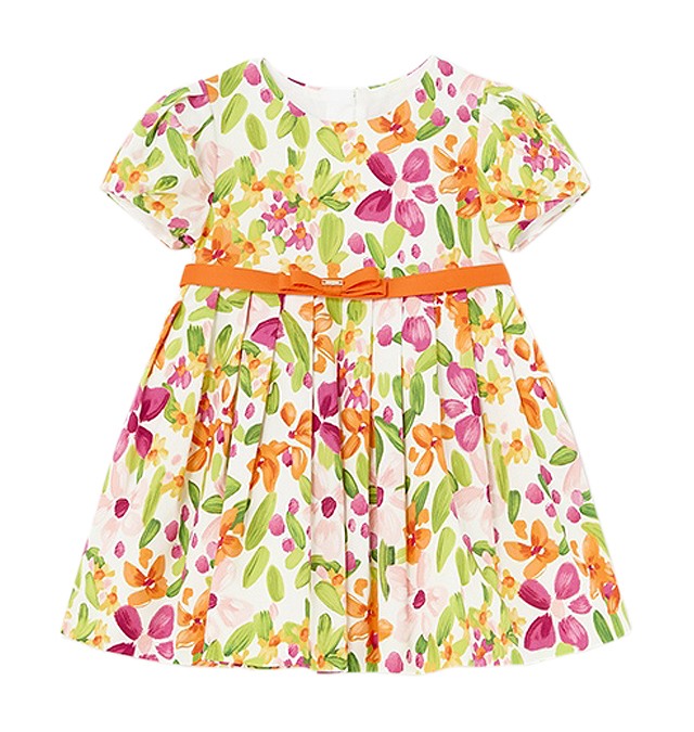 Rochie satin, imprimeu flori Rochita are maneca scurta, gulerul este rotund, iar inchiderea se face cu nasturi pe spate, pentru a usura imbracarea ei.Model este incretit in talie si ca desing un cordon cu o funda in fata.Material este vaporos si fluid pentru momentele speciale.Material: rochie - exterior - 97% bumbac / 3% elastan captuseala - 100% bumbac cordon - 100% bumbac