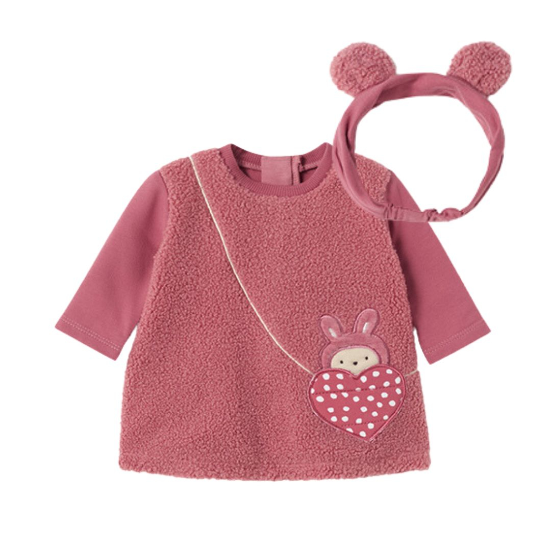 100% BumbacCuloare: magentaBentita are aplicate doua urechiuse din materialu tip blanita utilizat si la rochita.Material:90% Bumbac