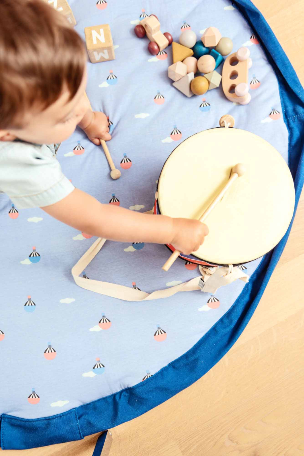 Aici aveti sacul de jucarii/geanta /covorasul-salteluta de joaca Baloane cu aer. O achizitie isteata pentru mami ce-i va salva timpul! Covorasul vine cu o bareta ce se poate agata usor de margini pentru a-l transforma rapid in geanta. Sac de jucarii, geanta pentru scutece sau transport acesorii pentru bebe!Salteluta este captusita si cusuta in roburi pentru a pastra structura iar bebe sa se poata juca in voie pe covorasul moale.Joaca s-a terminat? Strange tot printr-o singura miscare si agata geanta de marginea caruciorului. Acum hai la drum!Sacul este o solutie simpla si eficienta pentru depozitarea jucariilor, dar si un spatiu de joaca sau un mod de a-ti invata copilul sa stranga usor toate lucrurile cand a terminat sa se joace.