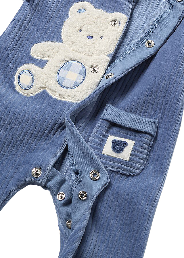 Salopeta (pijama) reiat Salopeta (pijama) are maneca lunga, gulerul rotud si mansete elastice.Inchiderea se face cu capse pe fata (mijloc), si pe interiorul picioruselor pentru a facilita imbracarea acestuia. Materialul este moale de velour si catifelat la atingere.Partea din spate a tivului (manseta) poate fi trasa spre partea din fata pentru a acoperi picioarele bebelusului.Desing: aplicatie buzunar si ursuletMaterial: 66% bumbac / 32% poliester / 2% elastan