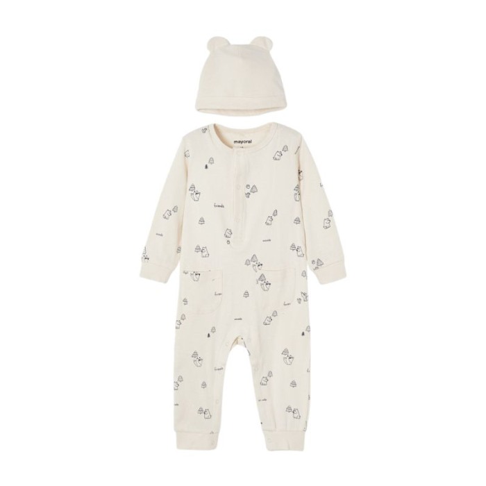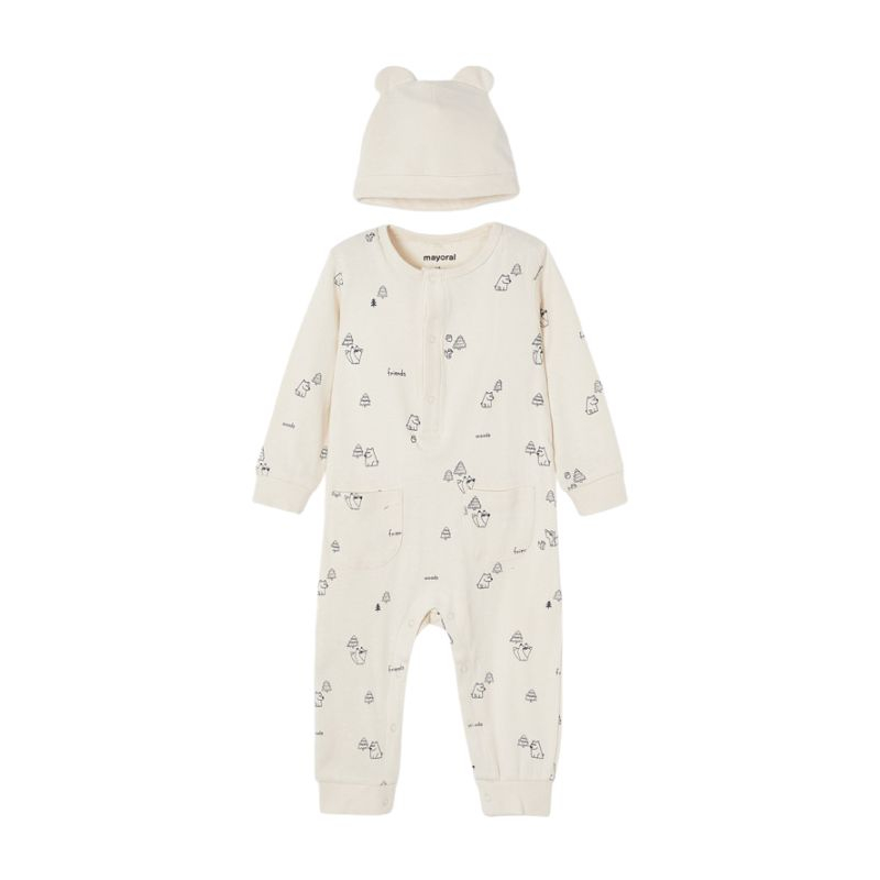 Set 2 piese Salopeta si caciulita Bej- Mayoral 3 ani
