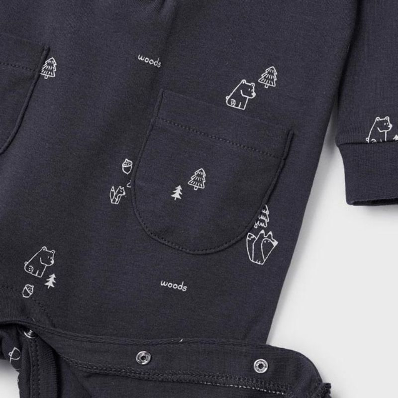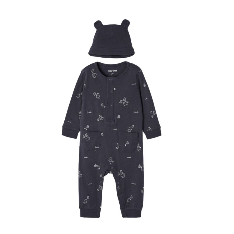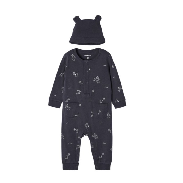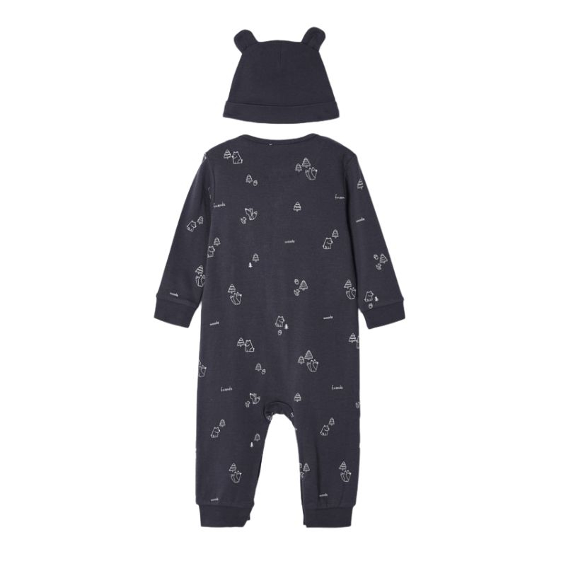 Set 2 piese Salopeta si caciulita GriSetul este format din 2 piese: - salopeta - caciulitaSalopeta are maneca lunga si guler rotud Inchiderea se face cu capse pe partea din fata. La masurile mari (18l luni - 3 ani) nu exista capse pe partea interioara a pantalonului. Doua buzunare aplicate pe partea din fata.Material este moale, din bumbac.Caciulita este din bumbac si are imprimeu ca si salopeta si in plus are urechiuse.Este excelenta in serile racoroase cand mergi la plimbare.Material: salopeta - 99% Bumbac 1% Elastan caciulita - 100% Bumbac captuseala - 100% bumbacCuloare: gri antracitImprimeu: animale padure / braziIntretinere: