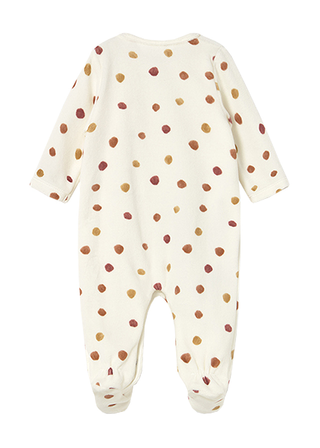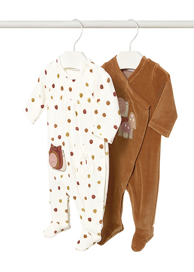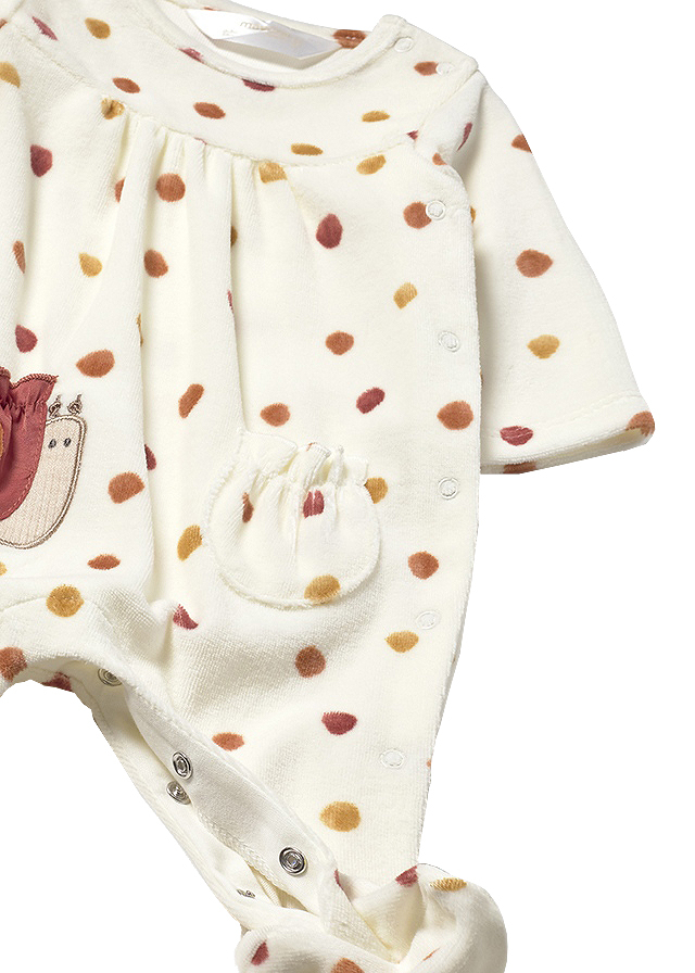 Salopetele (pijamale) au maneca lunga, gulerul rotund / incrucisat si botosi.Materialul este moale, iar inchiderea se face cu capse ascunse pe lateral si in interiorul picioruselor.Salopetele sunt practice pentru ca acopera piciorusele bebelusului si nu are nevoie de sosete. Poate fi o pijama comoda sau o salopeta de joaca excelenta si in acelasi timp, utila in garderoba bebelusilor in serile racoroase.