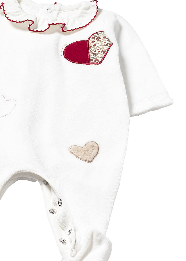 Salopetele (pijamale) au maneca lunga, gulerul rotund tip camasa / volanas si botosi.Materialul este moale, iar inchiderea se face cu capse pe spate si in interiorul picioruselor.Salopetele sunt practice pentru ca acopera piciorusele bebelusului si nu are nevoie de sosete. Poate fi o pijama comoda sau o salopeta de joaca excelenta si in acelasi timp, utila in garderoba bebelusilor in serile racoroase.