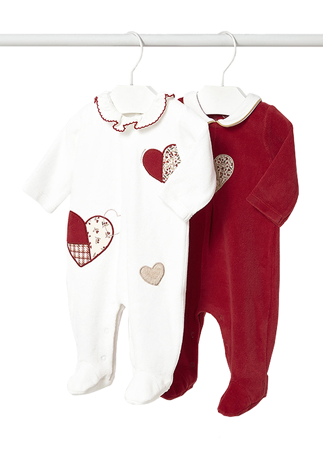 Set 2 salopete (pijamale) - alb/grena