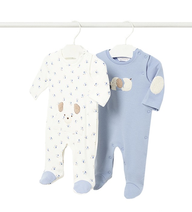 Set 2 salopete (pijamale) - CateiSetul de doua salopete (pijamale) asortate, au maneca lunga, gulerul rotud si botosi.