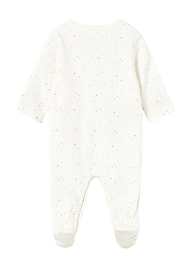Salopetele (pijamale) au maneca lunga, gulerul rotund si botosi. Materialul este moale, iar inchiderea se face cu capse ascunse pe fata / lateral si in interiorul picioruselor.