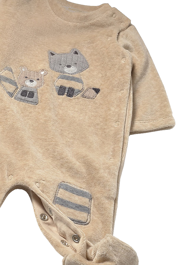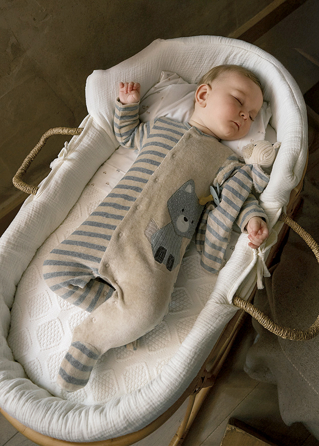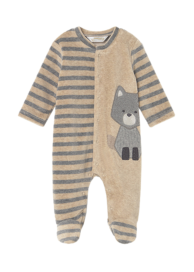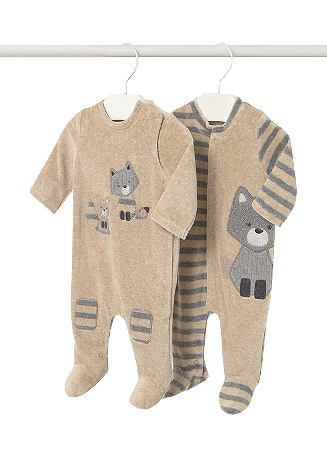 Salopetele (pijamale) au maneca lunga, gulerul rotund si botosi.Materialul este moale, iar inchiderea se face cu capse ascunse pe fata / lateral si in interiorul picioruselor.Salopetele sunt practice pentru ca acopera piciorusele bebelusului si nu are nevoie de sosete. Poate fi o pijama comoda sau o salopeta de joaca excelenta si in acelasi timp, utila in garderoba bebelusilor in serile racoroase.Elemente decorative: broderii.