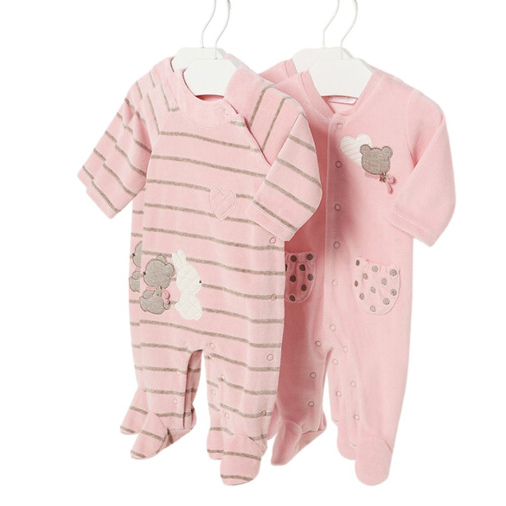 Set 2 salopete (pijamale) Ursuleti/buline de plus bumbac BCI nou-nascut - Mayoral 2-4 luni (65 cm)