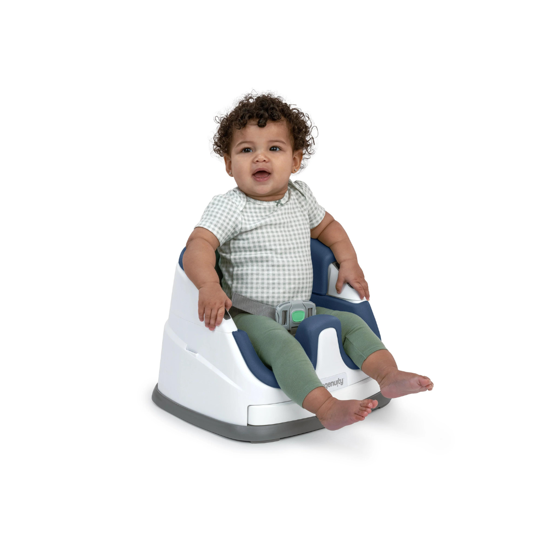 Scaunul poate fi utilizat si pe podea - fiind un spatiu in care bebelusul se poate juca sau poate fi utilizat ca si scaun de masa (cu sau fara tavita).
