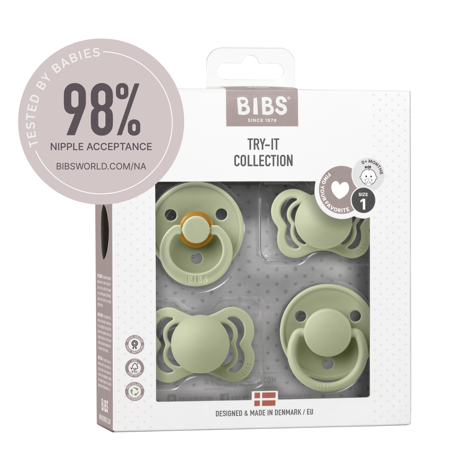 BIBS - Set 4 suzete Try-it collection 0 luni +-Sage