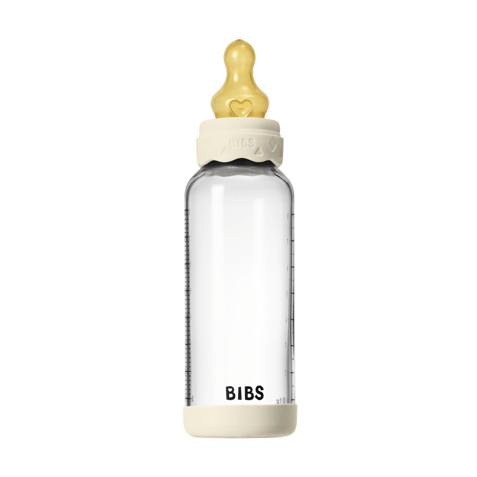 BIBS - Set complet biberon Boheme din sticla anticolici cu tetina din latex, flux mediu, 240 ml, Ivory
