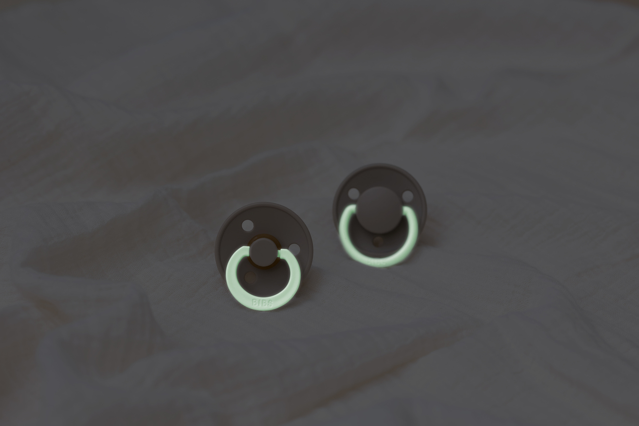 BIBS - Suzeta fosforescenta Colour GLOW Latex, tetina rotunda, 0 luni +-Cloud