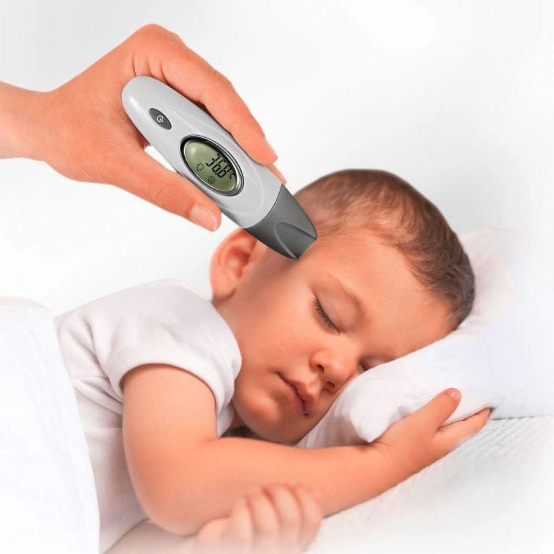 Termometru cu infrarosii pentru tampla si ureche SkinTemp Caracteristici:- Termometru digital ce masoara într-o secundă temperatura corpului pe tampla sau in ureche, temperatura oricărui obiect între 0 și 100 °C (biberon, mâncare, apă, etc.) sau temperatura ambientala- Timp de masurare: 1 secunda- Masuratori rapide si precise ale temperaturii, datorita senzorului in infrarosu de inalta calitate- Operare simpla cu un singur buton- Capac senzor detasabil, pentru comutarea automata intre modul de citire a temperaturii pe tampla sau in ureche- Ideal pentru intreaga familie, chiar si pentru bebelusii de la 0 luni- Puteti masura temperatura bebelusului fara a-l deranja, chiar si cand doarme- Semnalizeaza si avertizeaza optic si acustic starea de febra- Ecran LCD foarte mare, pentru a asigura citiri confortabile si sigure, chiar si pe intuneric- Spatiu de memorie pentru ultimele 19 valori masurate, pentru o usoara monitorizare a curbei de temperatura- Inchidere automata pentru economisirea bateriilor- Alimentare: 1 baterie CR2032 (inclusa)- Aparat medical certificat conform normelor Comunitatii EuropeneGarantie: 24 luni
