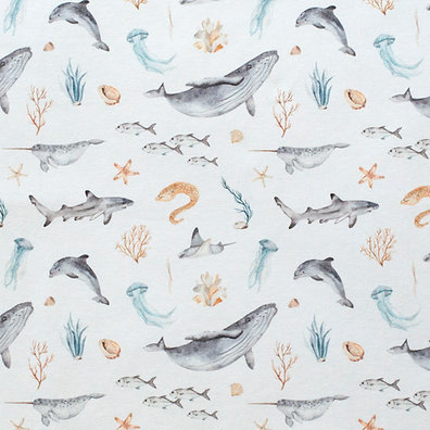 Varsta: 0 - 18 luniMateriale textile cu Certificat OEKO-Tex.Materiale textile cu Certificat OEKO-Tex..Culoare: albastru turcuaz/ bejDimensiuni: 90 x 70 cmImprimeu: animale marineTricotul din Jersey de bumbac Pointelle este un tricot fin cu gaurele ajurate, cu model în carouri. Tricotul are o paleta larga de utilizare pentru imbracaminte, datorita elasticitatii sale de exceptie, texturii ultra-moi si capacitatii de a se mula pe forma corpului. Este prietenos cu pielea bebelusilor si copiilor, detinand Certificatul Oeko-Tex Standard 100.