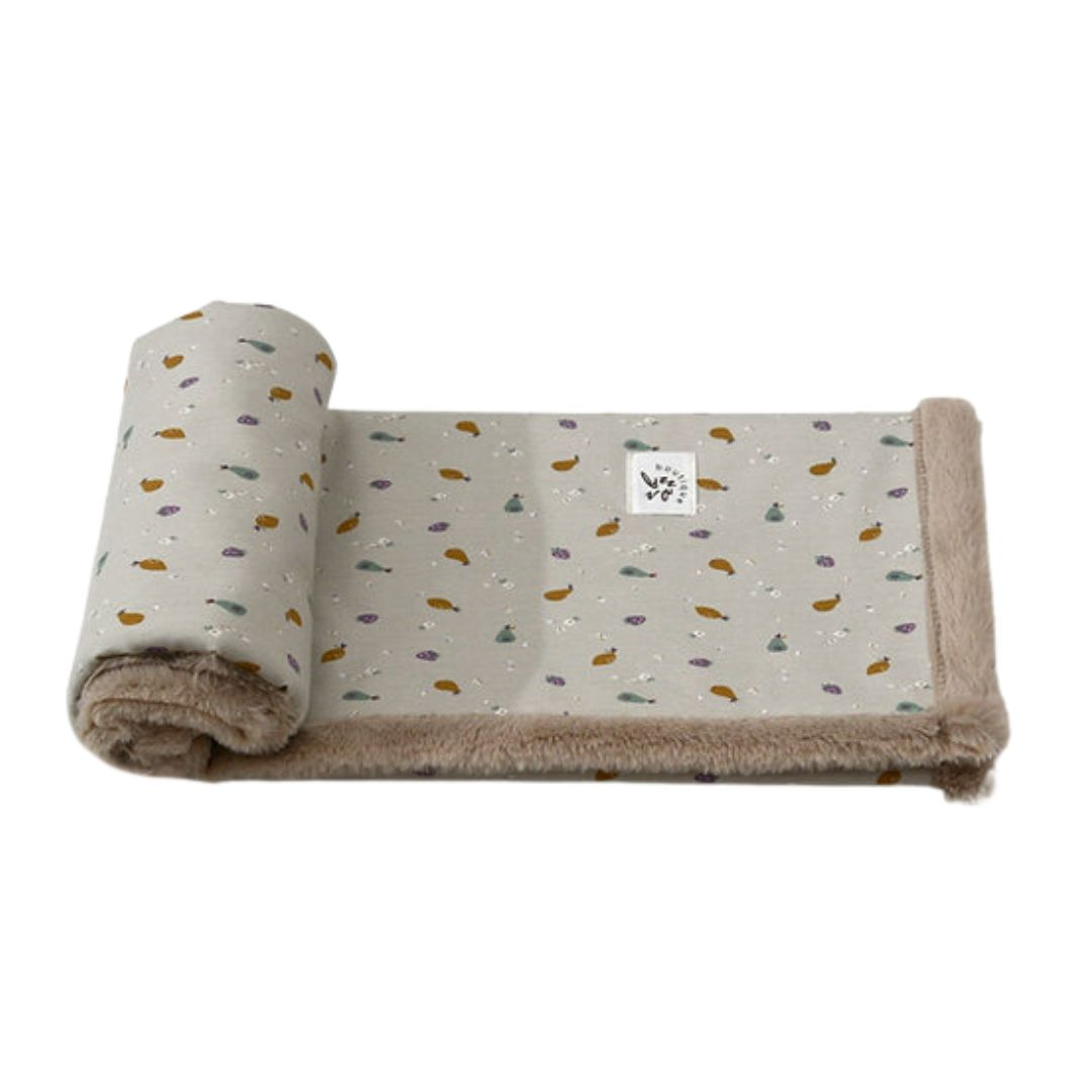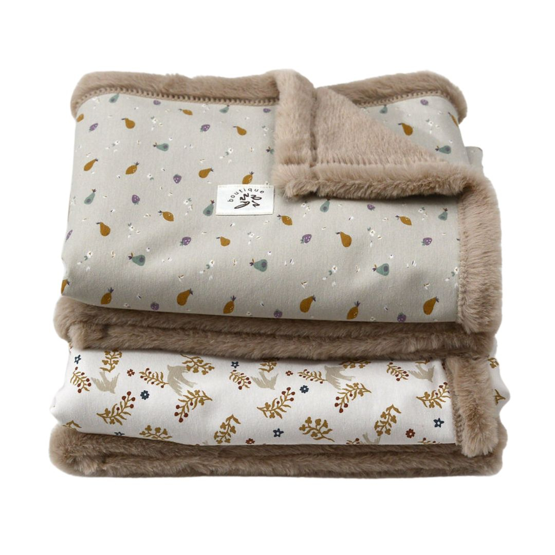 Foarte pufoasa si groasa, cu doua fete in culori naturale - una din Jersey de bumbac cu ilustratii delicate, iar cealalta cu o textura moale si bogata.Potrivita pentru a mentine micutul confortabil si cald in aer liber, ideala pentru plimbarile cu căruciorul, un must-have pentru bebelusi in cea mai rece perioada a anului.Materiale textile sunt importate din Franta, cu Certificat OEKO-Tex Standard 100.Tricotul din Jersey de bumbac este un tricot fin, cu o paleta larga de utilizare pentru imbracaminte, multumita elasticitatii sale de exceptie, texturii ultra-moi si capacitatii de a se mula pe forma corpului. Este prietenos cu pielea bebelusilor si copiilor.Rabbit Fur Minky este tricot foarte bogat ca textura, volumetric, cu fire lungi de blanita asemanatoare celei de iepuras, extrem de placut la atingere, utilizat pentru articole pentru bebelusi si copii.Material: fata - jersey (96% bumbac + 4% elastan) spate - 100% Curly Teddy (poliester)Varsta: 0 - 18 luniCuloare: alb / bejImprimeu: frunzeDimensiune: 95 x 75 cmIntretinere: