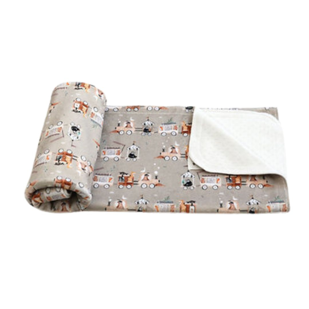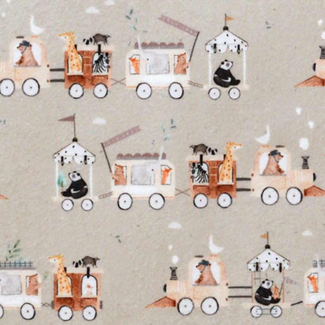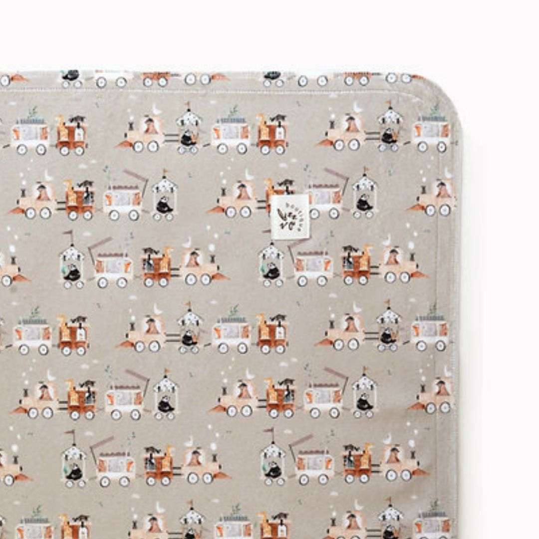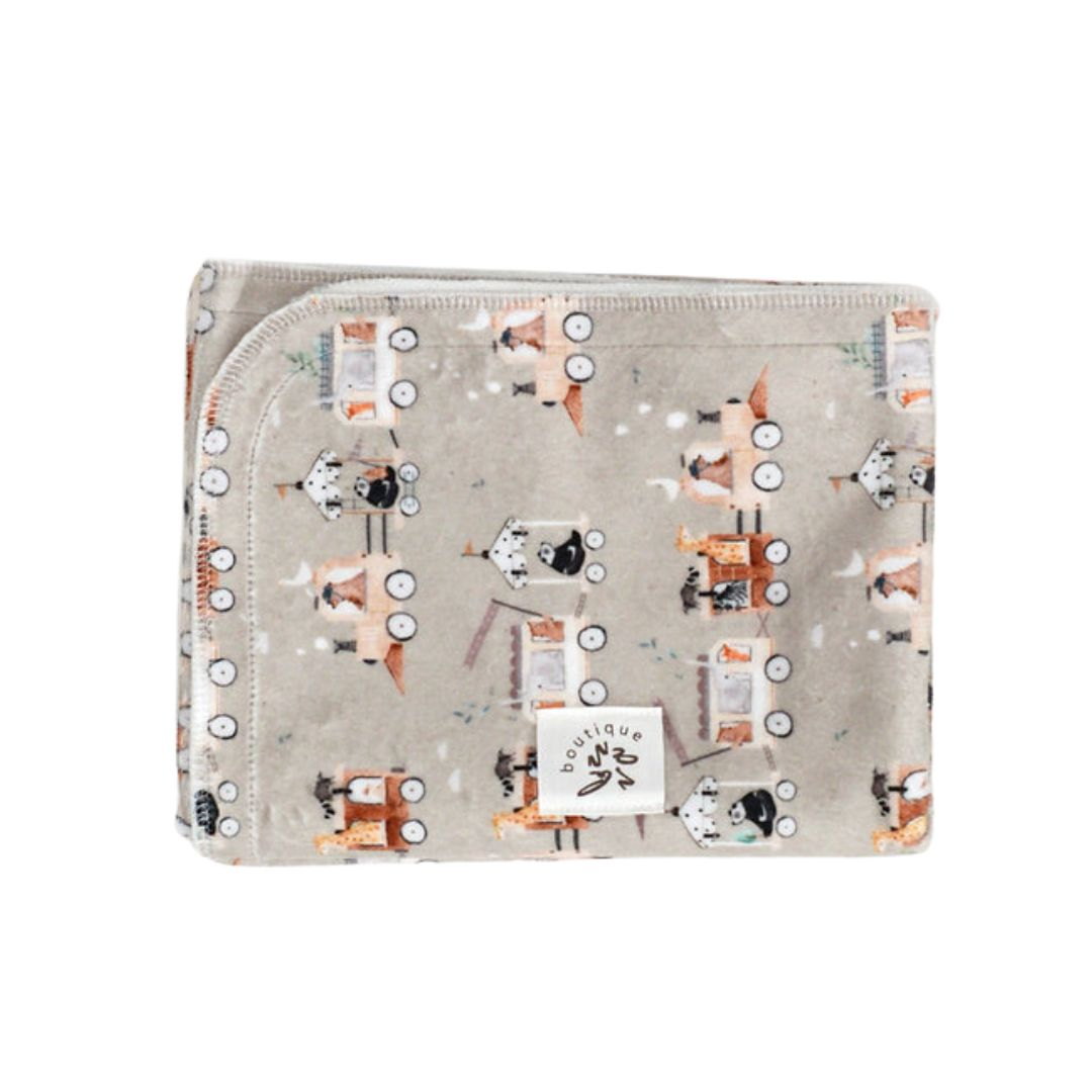 Paturica Minky Circus, cu imprimeu trenulete cu animalute care va captiva imaginatia micutului - un must-have pentru camera bebelusului   sau la plimbare.