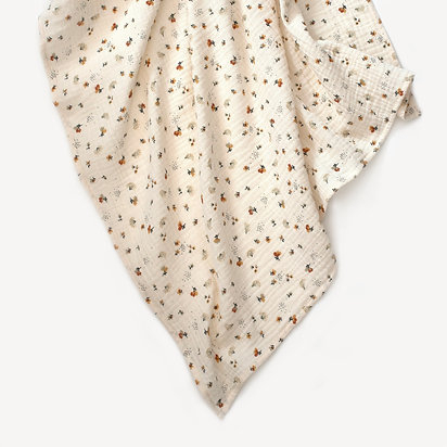 Durabilitate - Desi pare un material usor, semitransparent si gata sa se destrame este chiar foarte rezist la multiple utilizari fara a-si pierde calitatile. Material: 100% bumbac cu Certificat OEKO-TEX ( Standard 100 Certificat in Textile).Culoare: bejImprimeu: floricele.Dimensiuni: 120x 120 cm Varsta: 0 - 2 ani