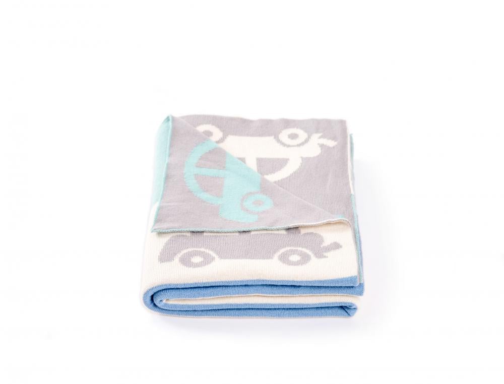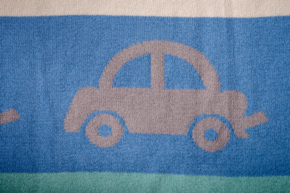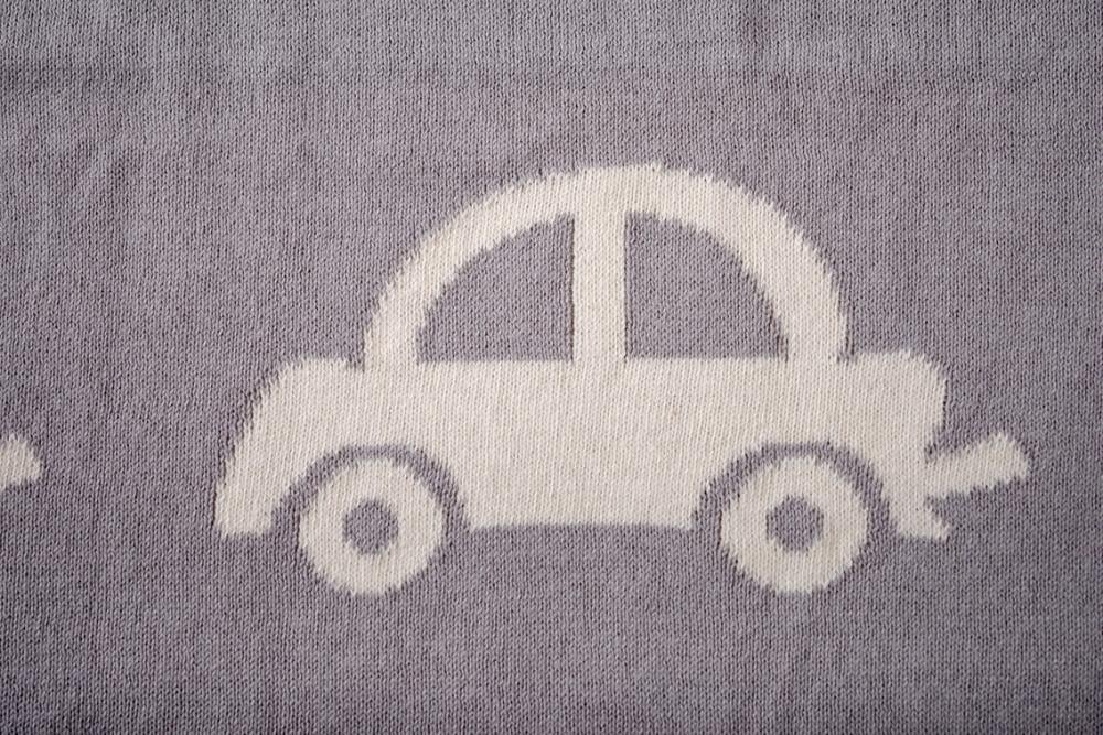 Paturica tricotata Blue Grey Cars este fina, moale si calduroasa, confectionata dintr-un jacquard dublu.Aceasta este utila in patut, carucior sau oriunde doriti sa aduceti putina caldura, stil si lux. Este cadoul perfect pentru o viitoare mamica sau pentru prima vizita facuta unui bebelus.