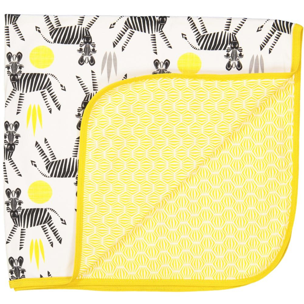 Are doua fete, pe o parte cu zebre si pe cealalta parte cu o grafica simpla alb-galben