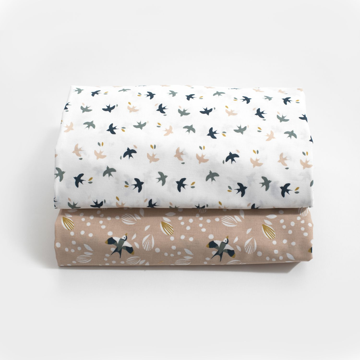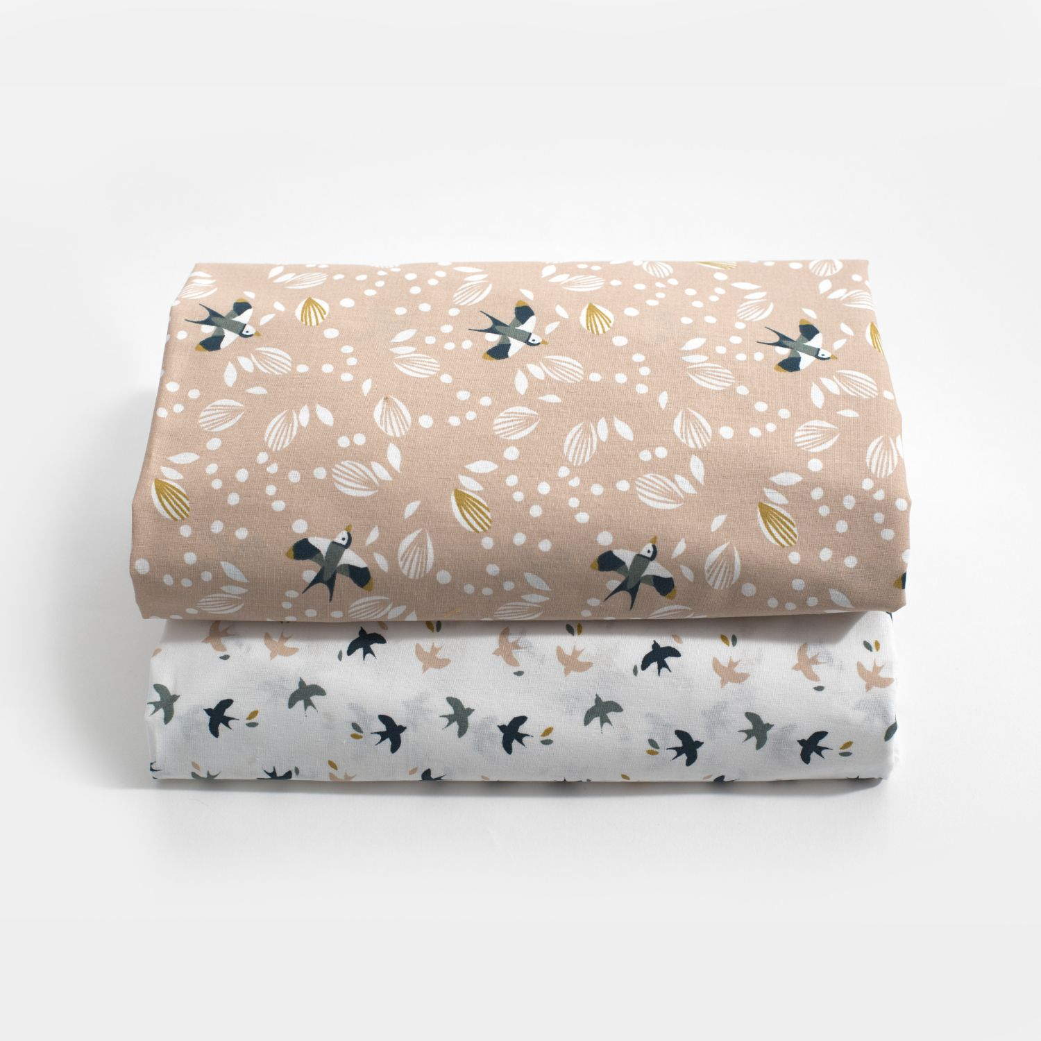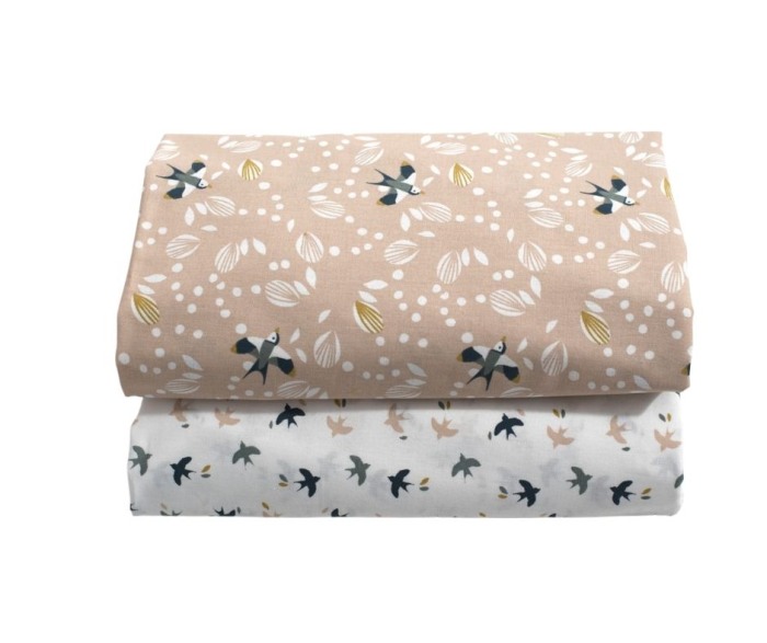 Set 2 cearceafuri patut - Birdie in PetaleCearceafurile Birdie in Petale sunt in culori asortate, prevazute cu elastic in colturi, pentru a ajuta la prinderea rapida a cearceafului pe patut si sustinerea intinsa pentru a nu crea cute sub bebelus.