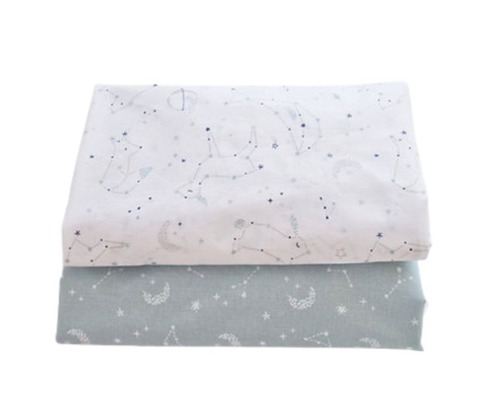 Set 2 cearceafuri patut - Blue ConstellationsCearceafurile sunt potrivite pentru saltea de maxim 10 cm inaltime.Ele sunt prevazute cu elastic in colturi, pentru a ajuta la prinderea rapida a cearceafului pe patut si sustinerea intinsa pentru a nu crea cute sub bebelus.Acestea sunt rezistente la multiple spalari, fara a-si pierde calitatile initiale.Material: 100% bumbac cu Certificat OEKO-TEX (Standard 100 Certificat in Textiles)