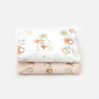 Contine 2x cearceafuri asortate, cu elastic pe colturi. Bumbac fin cu imprimeuri delicate.Cearceafurile sunt potrivite pentru saltea de maxim 10 cm inaltime.Ele sunt prevazute cu elastic in colturi, pentru a ajuta la prinderea rapida a cearceafului pe patut si sustinerea intinsa pentru a nu crea cute sub bebelus.Acestea sunt rezistente la multiple spalari, fara a-si pierde calitatile initiale.Material: 100% bumbac cu Certificat OEKO-TEX (Standard 100 Certificat in Textiles)