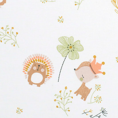 Culoare:alb/piersicaImprimeu:ursi/caprioareDimensiuni: 60 x 120 cm     Spalare: automata / manuala, cu detergent pentru rufe colorate