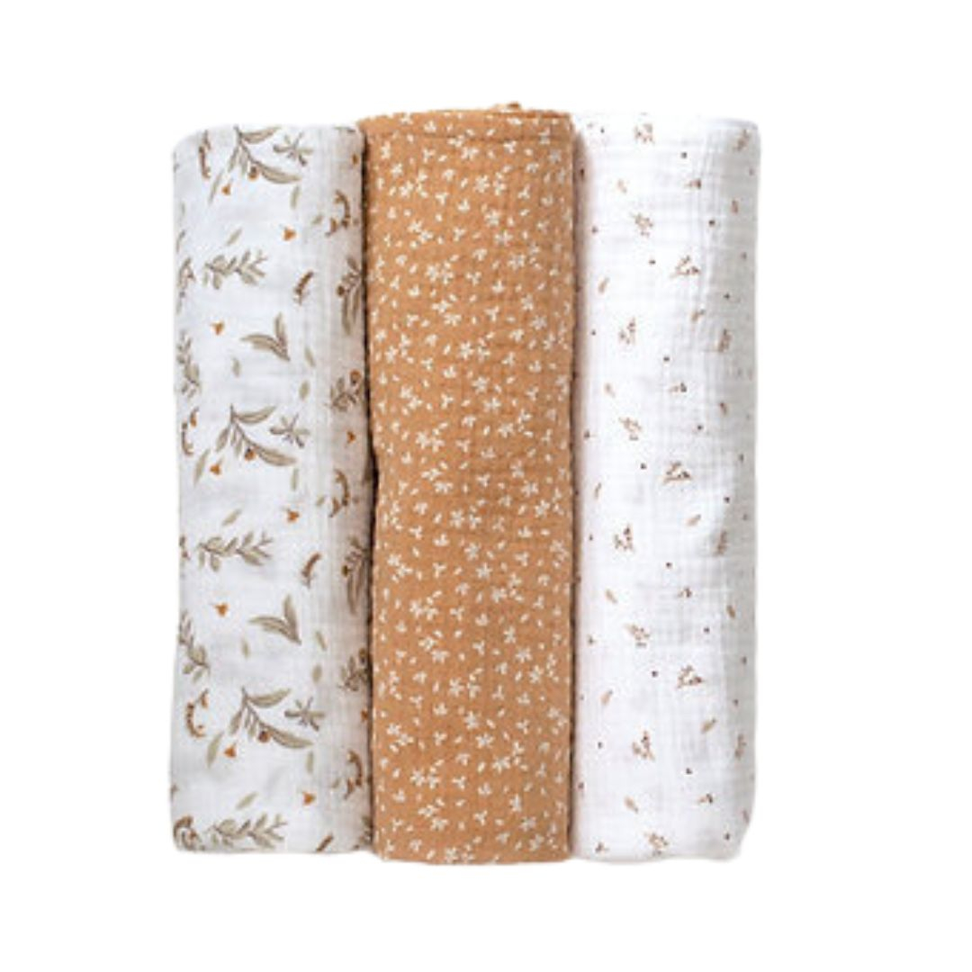 Set 3x paturici muselina Wheat& Flowers - Buva