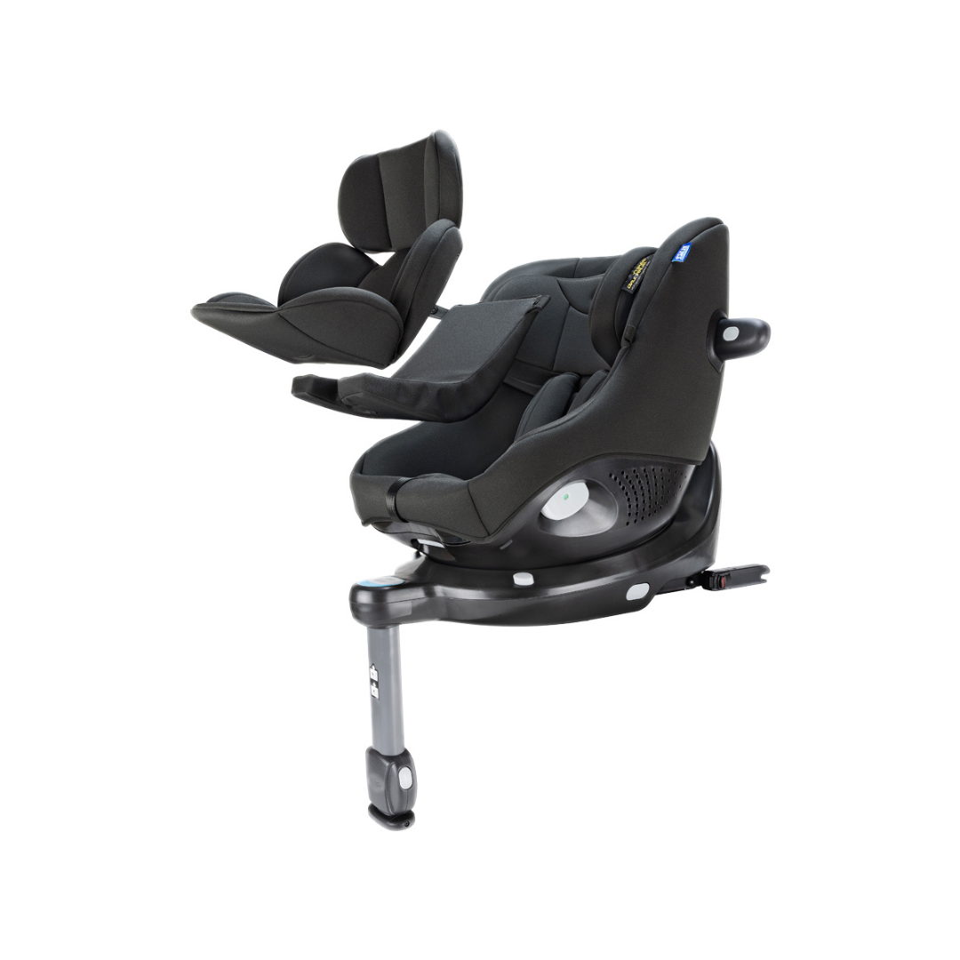 Functia de rotire 360° permite intoarcerea lina a scaunului cu o singura mana, oferind acces rapid si comod la copil din orice unghi, pentru a-l aseza sau ridica fara efort.