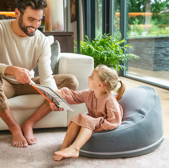 Inainte de a-l aseza pe bebelus in sezlong, puteti pune presiune in fata pentru a impinge microperlele in sus pentru a crea suport pentru spatele bebelusului