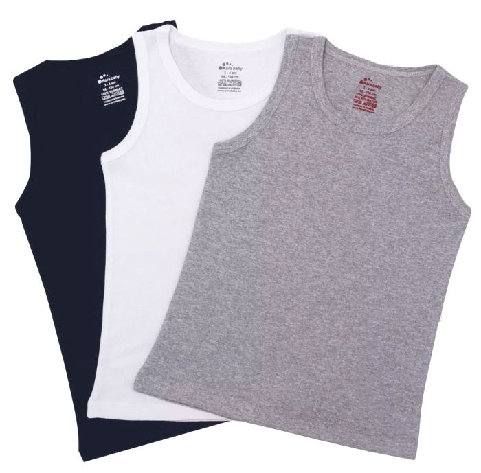 Set 3 Maiou copii colorateMaiourile sunt confectionate din RIB pieptanat, fiind rezistent la spalat, practic si de nelipsit din orice gardeoba. RIB-ul ofera elasticitate produsului.Material: 100% bumbac (alb / bleumarin) 70% bumbac / 30% poliester (gri)Greutate: 180 gr/mpIntretinere: Spalare: automata / manuala Temperatura: max. 30°C Interzis: albirea si uscarea la tambur Calcare: temperatura medie Fabricat in Romania