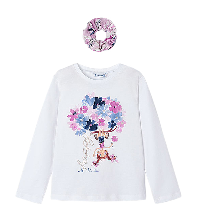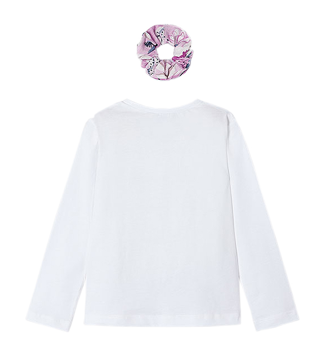 Tricou cu elastic par, Better Cotton, fetitaTTricoul cu maneca lunga are guler rotund, la baza gatului.Elemente decorative: aplicatiiElasticul de par il poti combina ca accesoriu cu orice tip de look.