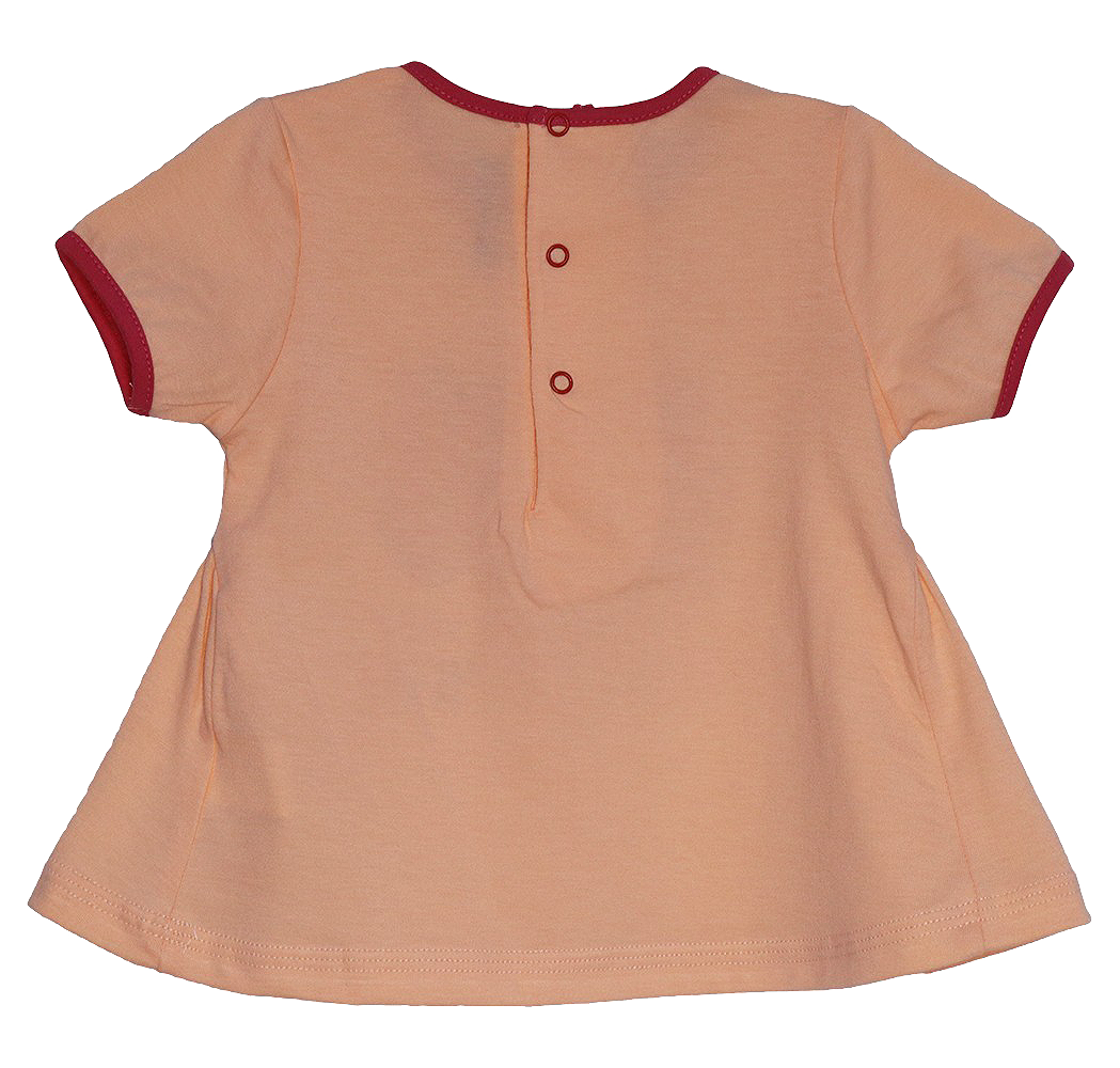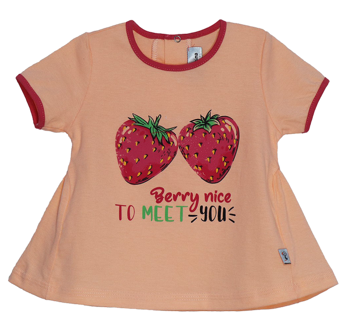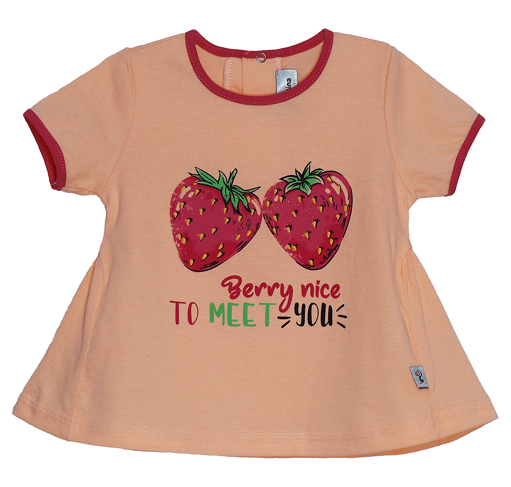 Tricou cu maneca scurta - CapsuniTricoul este la baza gatului si se inchide pe spate cu trei capse pentru a putea fi imbracat usor.Materialul este de buna calitate, rezistent la spalat, iar culorile se pastreaza in timp.Material: 100% bumbacCuloare: coraiImprimeu: capsuniIntretinere: Spalare: automata / manuala Temperatura: max. 30°C Interzis: albirea si uscarea la tambur Calcare: temperatura medie Fabricat in Romania