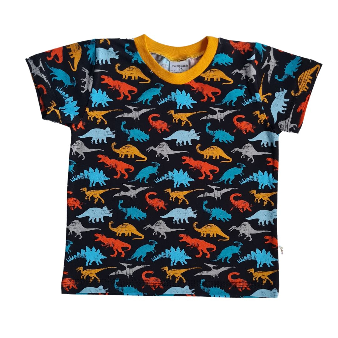Tricou cu maneca scurta - DinoTricoul este clasic, la baza gatului si maneca scurta.Materialul este de buna calitate, rezistent la spalat, iar culorile se pastreaza in timp. Material: 100% bumbacCuloare: albastru turcoazImprimeu: pisici negre Spalare: automata / manuala