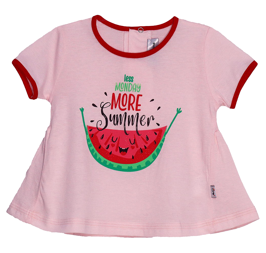 Tricou cu maneca scurta - PepeneTricoul este la baza gatului si se inchide pe spate cu trei capse pentru a putea fi imbracat usor.Materialul este de buna calitate, rezistent la spalat, iar culorile se pastreaza in timp.Material: 100% bumbacCuloare: rozImprimeu: felie de pepeneIntretinere: Spalare: automata / manuala Temperatura: max. 30°C Interzis: albirea si uscarea la tambur Calcare: temperatura medie Fabricat in Romania