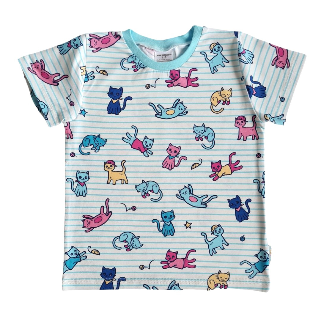 Tricou cu maneca scurta - Pisici la joacaTricoul este clasic, la baza gatului si maneca scurta.Materialul este de buna calitate, rezistent la spalat, iar culorile se pastreaza in timp. Material: 100% bumbacCuloare: albImprimeu: pisici la joaca Spalare: automata / manuala
