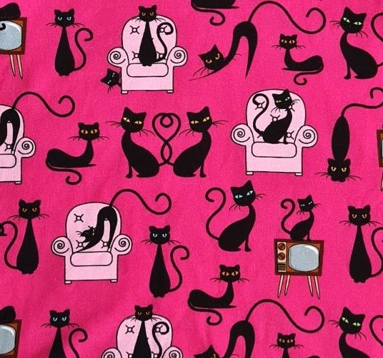 Tricou cu maneca scurta - Pisici pe televizorTricoul este clasic, la baza gatului si maneca scurta.Materialul este de buna calitate, rezistent la spalat, iar culorile se pastreaza in timp. Material: 100% bumbacCuloare: magentaImprimeu: pisici negre Spalare: automata / manuala